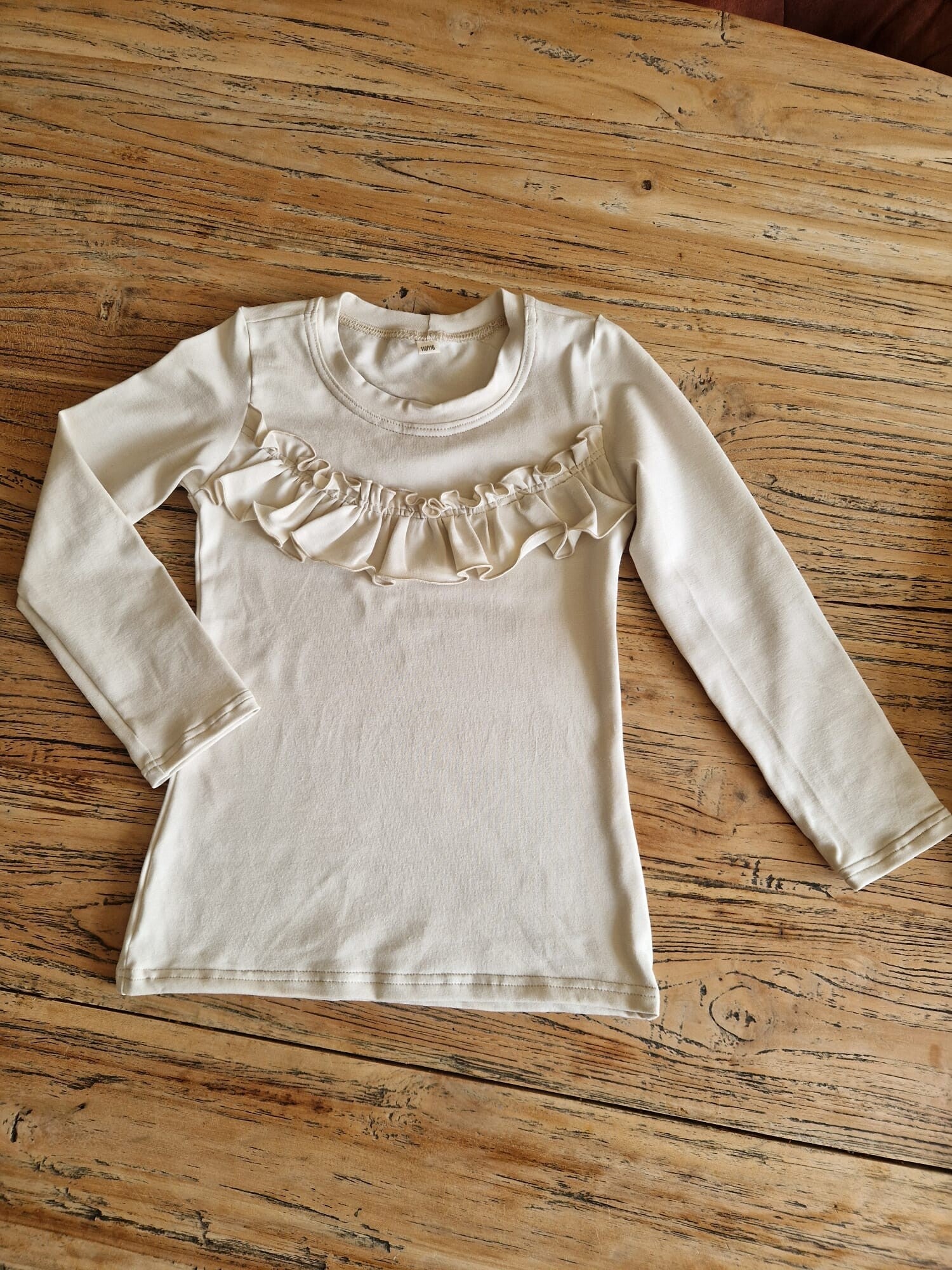 Het t-shirt is met de hand gemaakt en heeft een leuke roezel. Het t-shirt is van zacht katoen en sluit mooi aan.